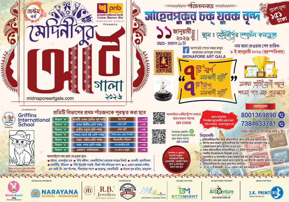 Midnapore Art Gala Contest is a unique drawing, painting and art competition designed to encourage creative expression. It is a platform to recognize the talent of drawing artists. We started our journey in January 2017 by conducting art contests. We are happy to announce that in the year 2026, on our very first anniversary, we are extending our services with respect, accountability, and integrity towards all kinds of art forms.